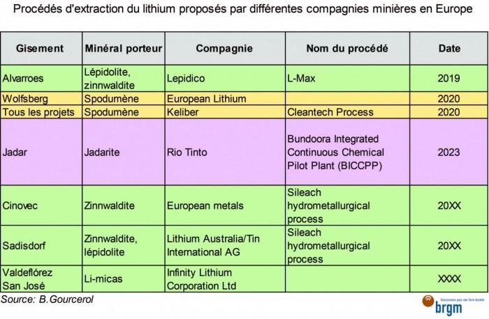Le lithium n’est pas un métal rare et est même relativement abondant sur Terre. Un des problèmes majeurs pour sa production à partir des minéraux lithinifères est sa diversité de formes minéralogiques. Ainsi, un procédé différent doit être mis en place pour chaque minéral porteur. Le coût de ces procédés représente donc un aspect clé dans la potentielle mise en production d’un gisement. Par exemple, l’extraction du lithium à partir de la zinnwaldite (largement présent dans les coupoles granitiques), induit la séparation du fer et du lithium. Ce fer est un pénalisant et doit être impérativement dissocié du lithium afin d’obtenir un carbonate de lithium de qualité métallurgique. D’après les données publiées par plusieurs compagnies minières, la mise en place de nouveaux procédés en Europe pourrait voir le jour entre 2019 et 2025, et permettre de convertir ces ressources en réserves.