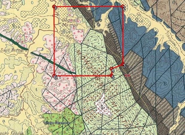 Carte géologique de la demande de permis exclusif de recherches « Permis Maripa » (Guyane)