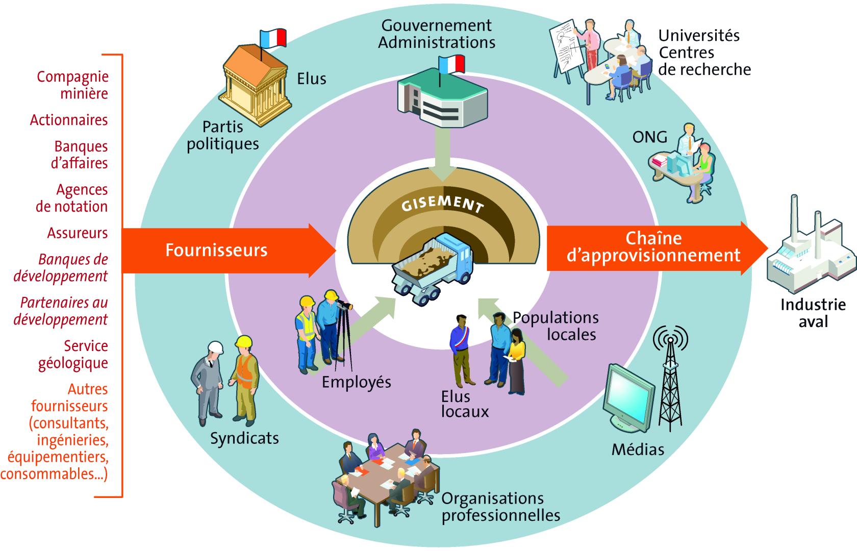 Se distinguent généralement pour un projet minier, les parties-prenantes suivantes :