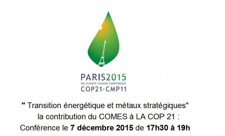 Transition énergétique et métaux stratégiques, la contribution du comité pour les métaux stratégiques (COMES) à la COP 21