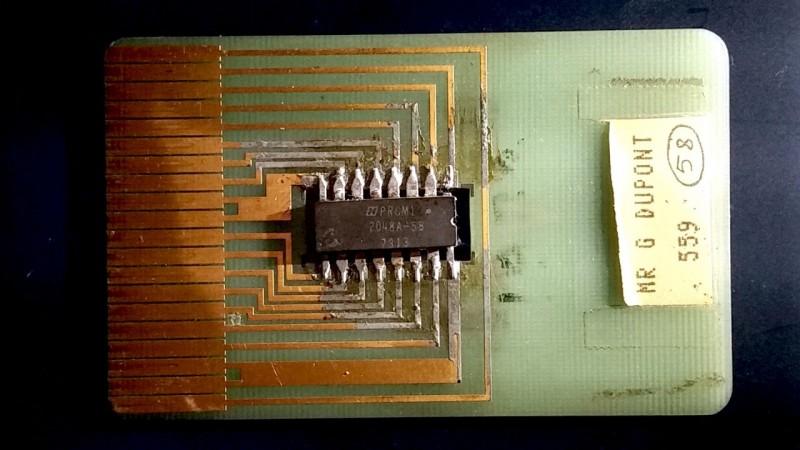 Un des premiers prototypes de carte à puce, réalisé par son inventeur Roland Moreno vers 1975 Par ByB — Travail personnel, CC BY-SA 4.0, https://commons.wikimedia.org