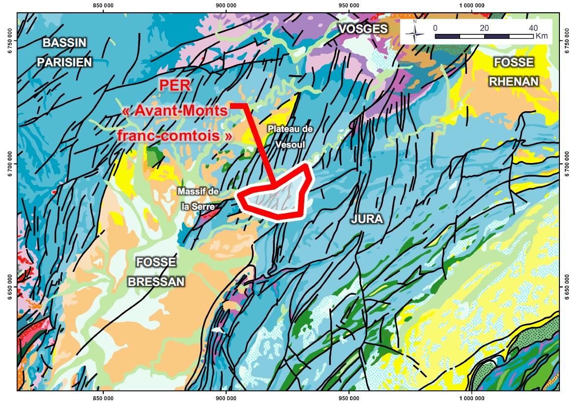 Le permis dit « Avants-monts Franc-Comtois » est sollicité pour une durée de 5 ans, par la société 45-8 AVANT-MONTS, dont le siège social est situé au 30, rue Bossuet, 57000 Metz. Ce titre couvre une superficie de 306 km2, dans le département du Doubs.