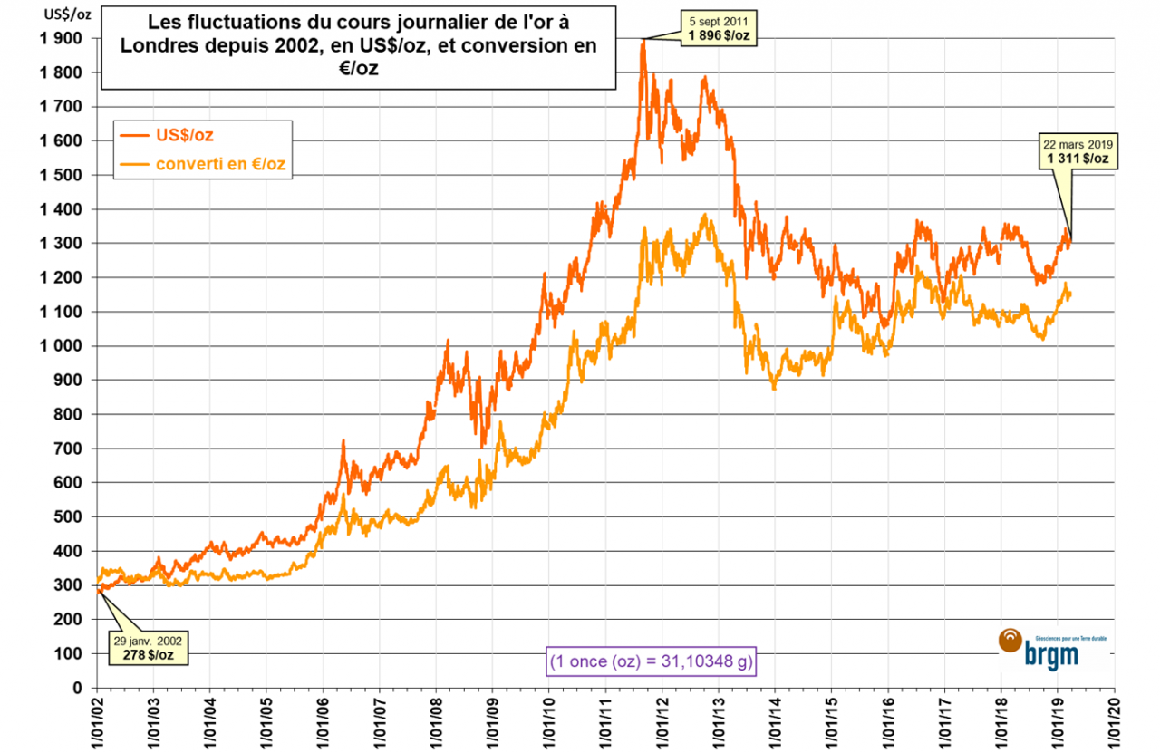 Sur les marchés internationaux, l'or est coté en US$/oz (Dollars US par onces "Troy"6).