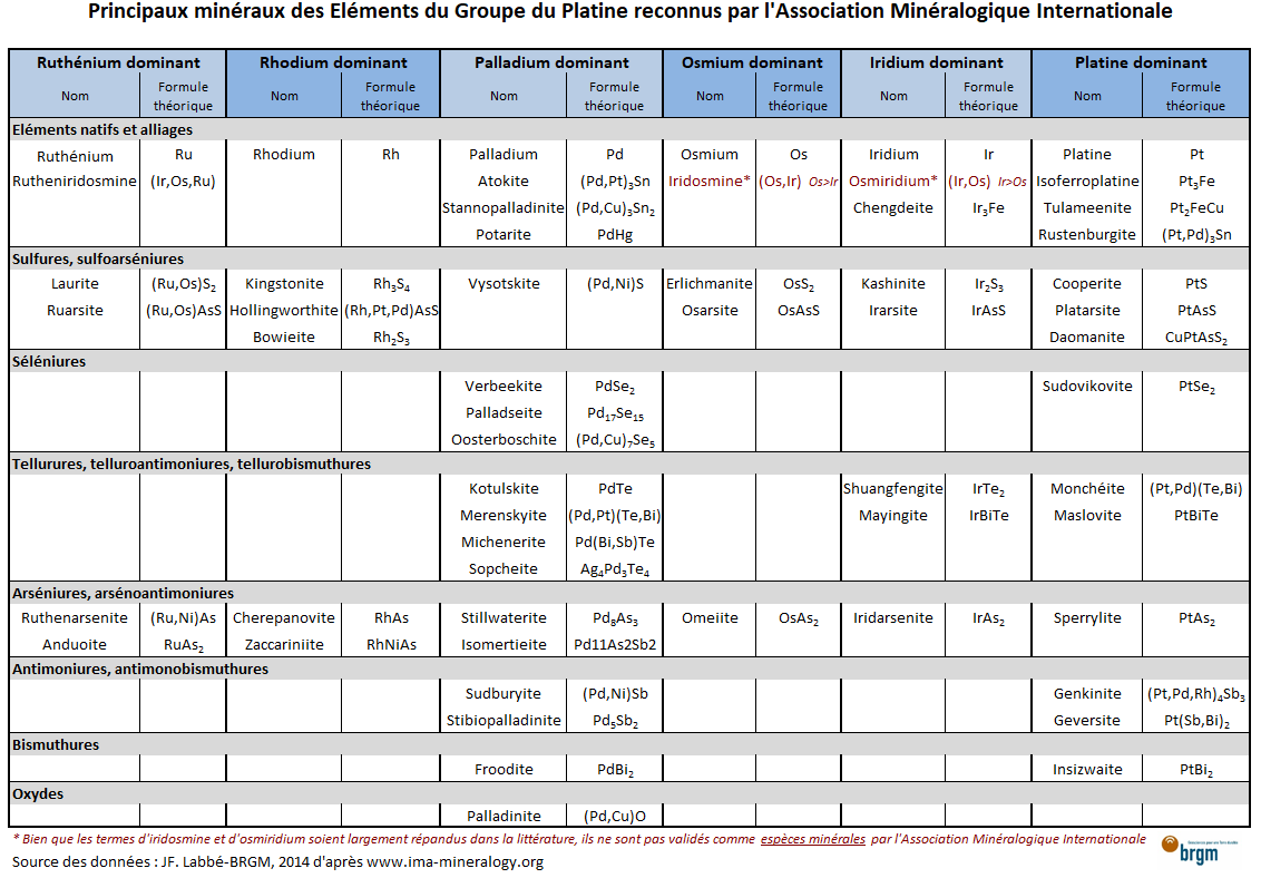 1En anglais, l’équivalent de EGP (Éléments du Groupe du Platine) est PGM (Platinum-Group Metals) ou PGE (Platinum-Group Elements)
