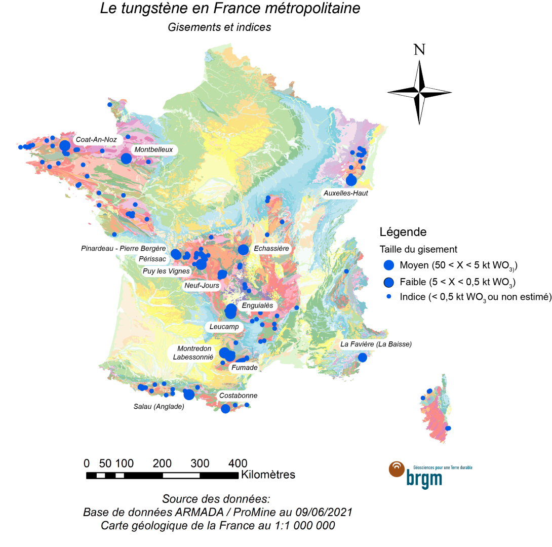9 BRGM, Réévaluation du potentiel français en ressources minérales: retraitement des données géochimiques de l'Inventaire et établissement de fiches de cibles minières. Rapport final, 2013.