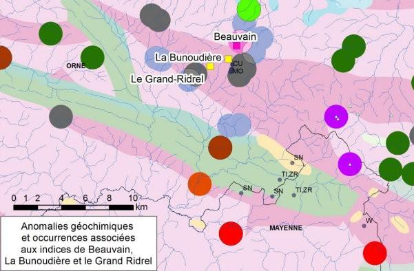 Anomalies géochimiques et occurrences associées à l’indice de Beauvain